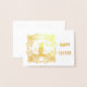 Imagem e texto Dourado do Coelhinho da Páscoa na frente deste cartão de folha de ouro real com texto personalizável especial no dentro.