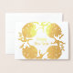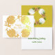 Cartões de Natal de folha especial (ou prata) com design tropical. Grandes dólares de areia e design estelar na frente (na sua escolha de prata ou ouro) com saudação personalizada, como "Feliz ano novo" ou "Feliz Natal". Continue o dentro de saudação e adicione uma assinatura. O dólar de areia, o peixe-estrela e o verde-preto estão impressos no dentro sobre a cor dourada. Este design de cartão é fornecido em três tamanhos e funciona para correio pessoal e corporativo.