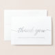 Este casamento Obrigado a usar a Real Silver Foil Metallic em uma elegante caligrafia do tipo script. Moderno, chique e sofisticado. Personalize este cartão de casamento com os nomes do Novo Sr. e da Sra. Inclua a data do casamento e uma saudação especial personalizada do coração. Mostre aos seus convidados de casamento sua sincera gratidão e inclua uma foto especial do grande dia que será apreciada e traga-os de volta para a sua celebração. Dica: Use uma foto com a noiva e o noivo que inclua convidados honorários para torná-la mais especial. Os pais da noiva e do noivo, avós, madrinhas, padrinhos de casamento, floristas, portadores de anéis, Padrões, etc., sentir-se-ão mais especiais.
