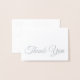 Um design elegante e tradicional com as palavras "obrigado você" na letra de script na parte inferior da frente em folha prateada real. Um design versátil que você pode usar em qualquer ocasião quando quiser obrigado alguém especial! Ideal para casamentos. Também disponível em folha de ouro real.