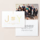 Enviar simplesmente desejos de na moda feriados a clientes, clientes e parceiros comerciais com cartões de natal de folha de alumínio reais elegantes de uma empresa. A foto e toda a redação desta modelo de cartão dobrado são simples de personalizar. O Enfeites de natal, o logótipo e o texto do lado frontal são impressos com folha de ouro metálica real sobre fundo branco básico. (Para obter melhores resultados, a imagem do logotipo carregada deve ser preta com um fundo branco ou transparente.) O moderno design minimalista apresenta um adorno chic elegante JOY, uma simples tipografia negra clássica e uma fotografia da sua escolha. Disponíveis tanto em pequenas quantidades como em grande quantidade, esses cartões são adequados para pequenos empresários como para profissionais corporativos. Clientes empresariais, família e amigos adorarão o luxo sofisticado desses cartões de cartões de natal personalizados. Saudações!