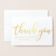 Cartão Metalizado Modern Obrigado Foto do Casal de Casamento Dourada