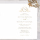 Um convite elegante e único, dobrado em Casamento, com uma película de ouro real, com um delicado monograma desenhado em folha fina, com iniciais de casal, com detalhes florais reais. Dentro, mas não em folha real, em tom de ouro, permitindo que os convidados leiam sem esforço todos os detalhes do casamento. Design branco e dourado. Capacidade de escolher envelopes brancos ou Kraft, bem como de exibir ou não os nomes do Zazzle e do designer no verso. Parte de nossa coleção "Casamento Minimalista da Caligrafia Elegante" com uma variedade de produtos coordenadores disponíveis. Visite a coleção inteira em: https://www.zazzle.com/collections/elegant_calligraphy_minimalist_wedding_stationery-119497981924462546