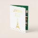 Um cartão de Noel alegre, verde e dourado com quatro seções de design distintas! Uma delas é uma impressão em cores dentro do cartão. Uma pequena senhora vintage está vestida com um gorro e um casaco de pele verde. Satisfeita em uma cadeira em Paris. Ao longe está a Torre Eiffel! "Joyeux Noël" é o francês para "Feliz Natal". 2. Dentro do cartão, há um fundo que se assemelha a pergaminho verde. Você pode adicionar uma foto ou mensagens. 3. Parte da frente externa: a torre Eiffel e a saudação francesa de Natal "Joyeux Noel" são impressas em folha dourada sobre um fundo branco. 4. Parte de trás externa: a torre Eiffel é impressa em folha dourada sobre um fundo branco!