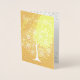 Feliz Aniversário, Cartão de Flores de Árvore Imaginosa. Fundo de folhas de ouro, árvore branca em flor, e feliz aniversário do lado da frente. Desejo personalizável, seu nome, flores na dentro. Bonita, moderna e simples.