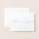 Envie um cartão brilhante, brilhante e esplêndido de "obrigado" a todo seu amado convidado! Esta bela folha de alumínio apresenta um design moderno de roteiros na frente. Personalize a dentro com sua foto favorita de casamento!