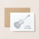 Um motif de guitarra acústica clássico em shimmering prata ou folha de ouro, em um cartão de saudações que é simples de personalizar com seus próprios nomes e outros textos. Personalizável para qualquer ocasião, este cartão será adequado a um músico, membro da banda, cantor, compositor, professor de música ou aprendiz de instrumentos de orquestral.