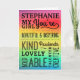 Deseje a uma garota especial em sua vida um feliz aniversário pelo nome com este cheio de tipografia colorida e personalizado de adjetivos complementares, incluindo, a mensagem, "Minha garota, você é bonita e inspiradora, gentil, apaixonada, adorável, ousada, talentosa, criativa." Design aparece em letras negras sobre fundo colorido do gradiente do arco-íris. O dentro tem a seguinte mensagem (mas pode ser personalizado para ajustado das suas necessidades). Você possui tantas qualidades incríveis, elas são muitas para listar. Desejando-lhe um aniversário maravilhoso e cheio de diversão com muitas bênçãos!