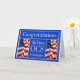 Envie parabéns a uma força aérea que gradua-se de OCS (escola de candidato de oficiais), das características do cartão um fundo azul, de "OCS" em de prata e da bandeira americana. Dog tags do design de cartão ©2013 & botas de combate militares pela xerez Harris