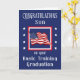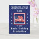 Envie parabéns a seu filho na graduação da formação básica com este cartão que caracteriza um fundo azul escuro, umas estrelas brancas e um dog tags um Flag.©2013 e umas botas de combate americanos pela xerez Harris