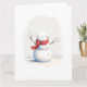 Cartão Minimal Snowman Red Scarf Watercolor Christmas Art