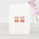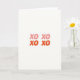 This simple card keeps things simple with a big white background and four “XO” pairs arranged in a neat 2x2 grid at the center. The top two “XO” sets are a soft blush pink, and the bottom two are a warm tangerine orange. Each letter looks rounded and slightly slanted, like casual hand lettering, which makes it feel friendly and close. There are no characters or objects, just the letters and lots of open space that makes the message stand out. The “XO” text sits right in the middle of the front, easy to spot at a glance. It feels meaningful because it says “hugs and kisses” without needing anything else, which works for romance or a sweet friendship 🥰. The pink-to-orange mix adds a gentle-to-warm feeling that matches how affection can grow ❤️.