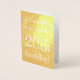 Este design de cartão de aniversário de folha de ouro personalizável apresenta uma mensagem como "ANameHere, tem um 20 fantástico aniversário!" na frente, onde o nome e o número de aniversário podem ser personalizados. O dentro apresenta uma mensagem de aniversário personalizada. Um cartão de aniversário como este poderia ser dado a alguém que celebrasse um aniversário.