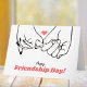 Celebre a beleza da amizade com esta elegante carta de saudação. Apresentando uma arte minimalista de linha branca e negra de duas mãos ligadas por dedos pálidos, com um pequeno coração vermelho simbolizando o vínculo da amizade, essa carta é perfeita para transmitir sentimentos sinceros. A mensagem "Feliz Dia da Amizade!" na frente é complementada por um dentro de mensagem personalizável, permitindo que você adicione seu próprio toque de apreço pelo seu amigo. Esta carta é uma encantadora guardiã que encapsula a essência da amizade.