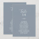 Estes cartões mínimos de assentos azuis e brancos são perfeitos para um casamento elegante. A design apresenta uma simples silhueta verde em branco sobre um fundo azul empoeirado com estilo minimalista clássico. A placa impressão na frente e atrás (lado duplo).