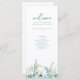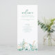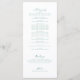 Um cartão de programa mínimo elegante para o dia de casamento, com uma bela design de folha de eucalipto de cor aquática com letra na moda. Personalize com os detalhes da sua cerimônia. Por favor, navegue no Mínimo Eucalyptus Leaf Green Wedding Suite para obter itens correspondentes.