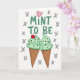 This Valentine's Day card features a sweet pun and a simple dessert scene that feels warm and romantic. Across the top, the words “MINT TO BE” are written in hand-drawn green script, and a small pink heart sits just above the first word. Under the text, two ice cream cones stand side by side, each topped with a mint-green scoop dotted with small dark chocolate chips. The cones are toasted brown with a clear waffle pattern, and the left scoop has a bright red cherry on top. The background is white with light gray “x” marks scattered around, like little kiss marks or doodles. The colors are easy on the eyes and the layout keeps the message front and center ❤️💌. It’s a cute choice for anyone who loves a food pun, a little sweetness, and a nod to togetherness 🍫.
