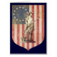 Desenho do Minuteman da concórdia com a primeira bandeira americana de 13 colônias (Betsy Ross) no fundo. Você pode adicionar sua mensagem no cobrir e no cumprimento para dentro.