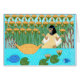 5X7 dobrou a carta de pintura do Rabino Me'irah Iliinsky de Miriam, irmã de Moisés, observando sua pequena arca no Nilo. Êxodo 2:3-4. O estilo é o de uma pintura egípcia, mas Miriam pode ser identificada como vestindo Tzitziot. Adequado como cartão de Passover, ou para qualquer mulher corajosa na sua vida.