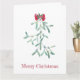 "Um encantador visco pendurado adornado com folhas verdes exuberantes, delicadas bagas brancas e um laço vermelho vibrante no topo, capturando o espírito festivo das tradições de férias."
