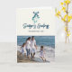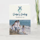 Mistura com uma fita azul no estilo moderno. Mande saudações da temporada para amigos e família com este cartão bonito. A frente pode ser personalizada - as saudações da estação, o nome da família e o ano. Adicione a sua própria foto de família a um cartão de feriado atraente. O dentro pode ser personalizado com uma mensagem e o nome da sua família.