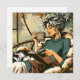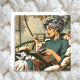 Uma senhora bonito relaxando em sua confortável cadeira de Papasan lendo um livro, um café bebendo com um gato preto e branco bonitinho dormindo em seu colo. Um cartão bonito para manter contato e dizer oi para um amigo!