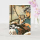 Uma senhora bonito relaxando em sua confortável cadeira de Papasan lendo um livro, um café bebendo com um gato preto e branco bonitinho dormindo em seu colo. Um cartão bonito para manter contato e dizer oi para um amigo!
