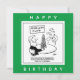 Cartão de aniversário de modelo. Homem num clube de modelagem construiu um modelo da Torre Eiffel a partir de salsichas. Cartoon surreal do cartunista britânico Nigel Sutherland.