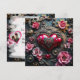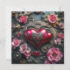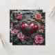 Lindo modelo de foto personalizado gótico steampunk cartão do dia dos namorados. Lindas engrenagens e rosas pretas, rosa vibrante, cobre e dourado. O verso tem três espaços para fotos em forma de coração. Você também pode editar o texto na área de personalização.