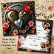 Lindo modelo de foto personalizado de Dia dos Namorados em estilo gótico steampunk. Lindas rosas cor-de-rosa e corações de prata, ouro e cobre. A parte de trás tem três espaços para fotos em forma de coração. Você também pode editar o texto na área de personalização.
