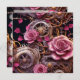 Lindo modelo de foto personalizado gótico vitoriano steampunk para cartão do Dia dos Namorados. Lindas rosas cor-de-rosa, engrenagens metálicas douradas, prateadas e de cobre. A parte de trás tem três espaços para fotos em forma de coração. Você também pode editar o texto na área de personalização.