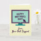 This greeting card features a modern digital-style illustration centered on a simple computer monitor in deep plum, with a bright teal screen that feels like a fresh message shared with care ❤️. Across the screen, uppercase text reads “HAPPY MOTHER’S DAY!” in a rich purple, standing out clearly against the teal. A dark cursor arrow tilts toward the exclamation point, adding a flirty little moment of “just clicked send,” like a quick note from someone who’s always nearby when needed. The background is warm cream with a faint circuit-path pattern, keeping the tech setting gentle rather than busy. Beneath the monitor, a flowing purple line of text says “Love, Your Tech Support,” placed like a signature that hints at an affectionate, familiar bond 👩. The colors stay simple and flat, with crisp shapes that keep the focus on the message and the cozy humor. The cream backdrop shows thin, maze-like circuit lines running behind the plum monitor and teal screen.