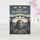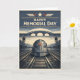 This Memorial Day design is inspired by Streamline Moderne railway posters of the 1930s–1940s, using transportation imagery as a quiet symbol of journey, service, and sacrifice. A powerful streamlined locomotive advances toward the viewer along converging tracks, creating a sense of purpose and forward motion. Overhead, a graceful arched bridge and soft sunburst sky evoke endurance and connection across generations. The message “Happy Memorial Day” appears in bold, period-appropriate typography, accented by stars and winged motifs that echo military insignia. Rendered in cool steel blues, warm creams, and subtle red highlights, the composition balances strength with reflection, honoring those who served with dignity and restraint.