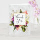 Um obrigado que você cumprimenta com um design bonito. Um arranjo floral de muitas variedades diferentes de flores em cores vermelha, rosa e branca, e muita folhagem verde-folha. Uma moldura colocada sobre o topo com uma borda de folha dourada. Design elegante. Um padrão de mármore branco. Dentro de mensagem que você pode personalizar.