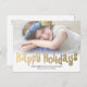 Personalize estes luz bonita à moda do divertimento e cartão horizontal moderno simples torrado do Natal projetados com texto do ouro do falso boas festas no branco. Note por favor que o ouro é impressão de cor e não é uma folha de ouro real. Substitua a imagem do modelo com sua foto favorita e mude toda a informação do modelo em ambos os lados com seus próprios. Este design tem um fraseio: "Desejando lhe uma época natalícia feliz e um ano novo enchidos com a paz e o amor." mas você pode mudar as palavras com seus próprios. crédito do modelo do *Photo: © StephaniePetraPhoto
