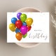 Cartão Moderno Script Colorido Balões Felizes Aniversário