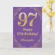 Moldura com Brilho Roxo e Dourado para 97º Aniversário. Para personalização adicional, clique no botão "Personalize" e use nossa ferramenta de design para modificar este modelo.