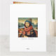 Um cartão de felicitações dobrado e divertido com a Mona Lisa enrolada em um gorro e cachecol aconchegantes, sorrindo através de uma cena de dezembro nevada com uma simples mensagem "Feliz 2026" do lado de fora. Por dentro, o design se abre para uma saudação espirituosa de Ano Novo impressa sobre um fundo com aparência de tela antiga texturizada - dando ao cartão um toque de humor e um clima artístico de museu. Perfeito para enviar votos calorosos com uma pitada de paródia renascentista e alegria de inverno.