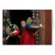 Monge nova com os chapéus negros no dzong de Paro, cartão customizável