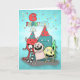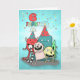 Um coral azul e macio, quase vermelho coral, pares com pedaços de verde e amarelo para criar um cartão de aniversário alegre e divertido para qualquer criança que tenha 6 anos de idade.