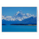 Lago azul lindo a pé de montanhas com capas de neve na Ilha Sul, NZ.