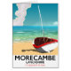 Morecambe, poster de viagens britânico de Lancashire, de um velho barco de madeira na praia arenosa durante um agradável dia quente.
