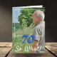 Motivacional e Inspiracional Adicione um Cartão de Aniversário de 70 de Foto para um homem que comemore seu setuagésimo aniversário. O cartão tem uma foto - insira a sua, e uma citação engraçada e positiva 70 E daí? Você pode mudar o número de idade para sua necessidade. Excelente de um homem com senso de humor.