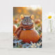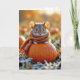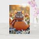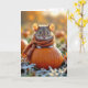 Um rato giro embrulhado num lenço acolchoado sobre uma abóbora num manto de abóbora congelado cheio de uma vibrante folhagem de outono. O texto pode ser alterado.