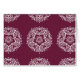 Esta mandala branca senta-se sobre um fundo vermelho-violeta escuro. A cor é profunda e sofisticada. Parte da coleção Jarn Mandala.