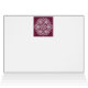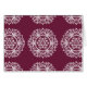 Esta mandala branca senta-se sobre um fundo vermelho-violeta escuro. A cor é profunda e sofisticada. Parte da Coleção Rosenn Mandala.