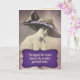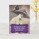 Vintage, de 1920, foto de uma linda jovem no seu enorme capô de Páscoa. Quanto maior a Páscoa da tampa, menor a aparência do bumbum. Bom conselho, exceto não incline a cabeça (como esta senhora está fazendo) ou você pode cair. Placa de Páscoa vintage divertida com cores de acento roxo.