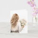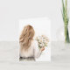 Mulher loira com buquê margarida em efeito aquoso para cartão de nota de vazio