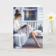 Cartão Mulher bonito e Gato no Swing de Porch