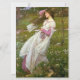 Este design apresenta uma pintura do artista inglês Pre-Raphaelite John William Waterhouse (1849-1917). Mostra uma linda mulher andando de capim. Ela tem colecionado flores. Ela tem cabelos castanhos longos e está vestindo um vestido branco e rosa. Ela tem pés nus. A obra de arte original foi pintada por John William Waterhouse em 1902.